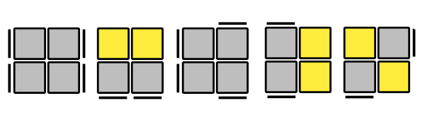 完成頂層顏色一樣後,我們先轉動頂層令到頂層變成以上其中一個情況。