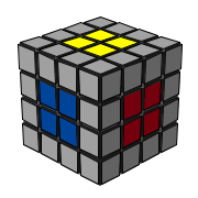 先選一個顏色,並完成一個 2x2 的中心,如右圖般。做法是做 2 個 1x2 的 pair, 然後把它合併起來。 不明的可以看一下下面的例子。 |