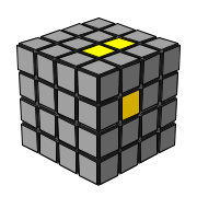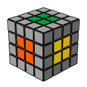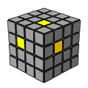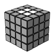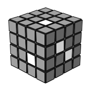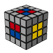 | 首先先要把一個亂了的 4x4x4 扭計骰還原至上圖般,把六面 2x2 的中心復原,要學的技巧也不算困難,只要大家留心學習就可。 大致上就是先組合一個 1x2 的pair,然後再組另一個 1x2 pair,再把他組合起來成為一個 2x2 的中心。 |