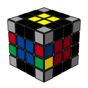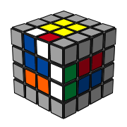 3. 如果作 d 的移動,邊塊就會組合起來了,同時中心也就亂了,因此要找一個未組合的邊塊移到原來白綠邊塊的位置。 |