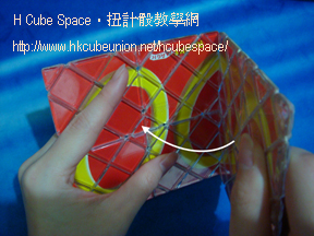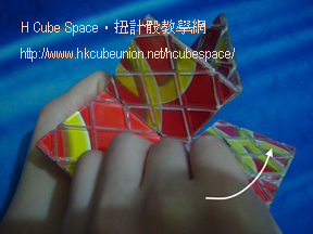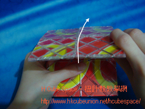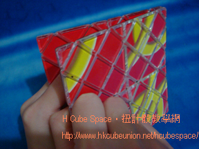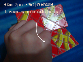 | 3. 這步驟比較難理解,右手拿著左上角的 1 塊,然後逆時針轉動 |